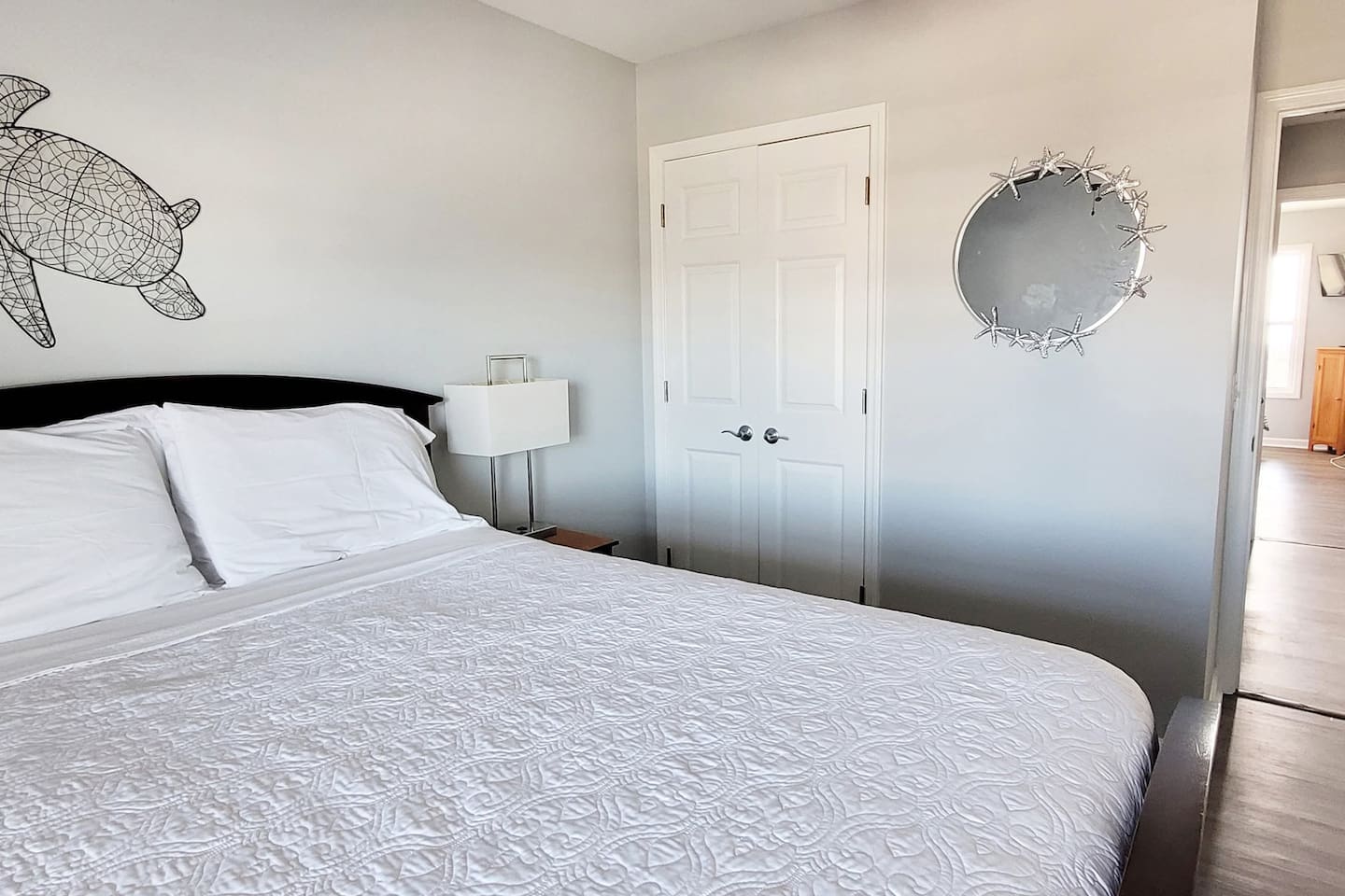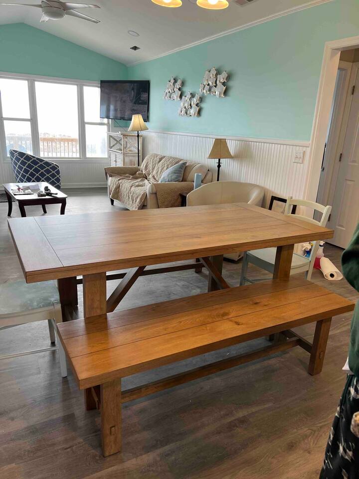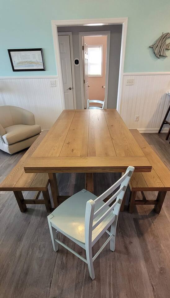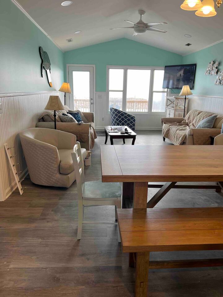 4 Bedroom, 2 Bathroom beach cottage on stilts, conveniently located just across from Ocean Crest Pier and has beautiful ocean views and easy beach access! 3 queen beds, 2 twin bunk beds (4 twin beds), pull out couch and pack-n-play make this house great for a family vacation. Booster seats provided. Outdoor shower with hot water allows you to keep the sand outside! We are dog friendly: pet fee of $100 for 2 dogs per stay.