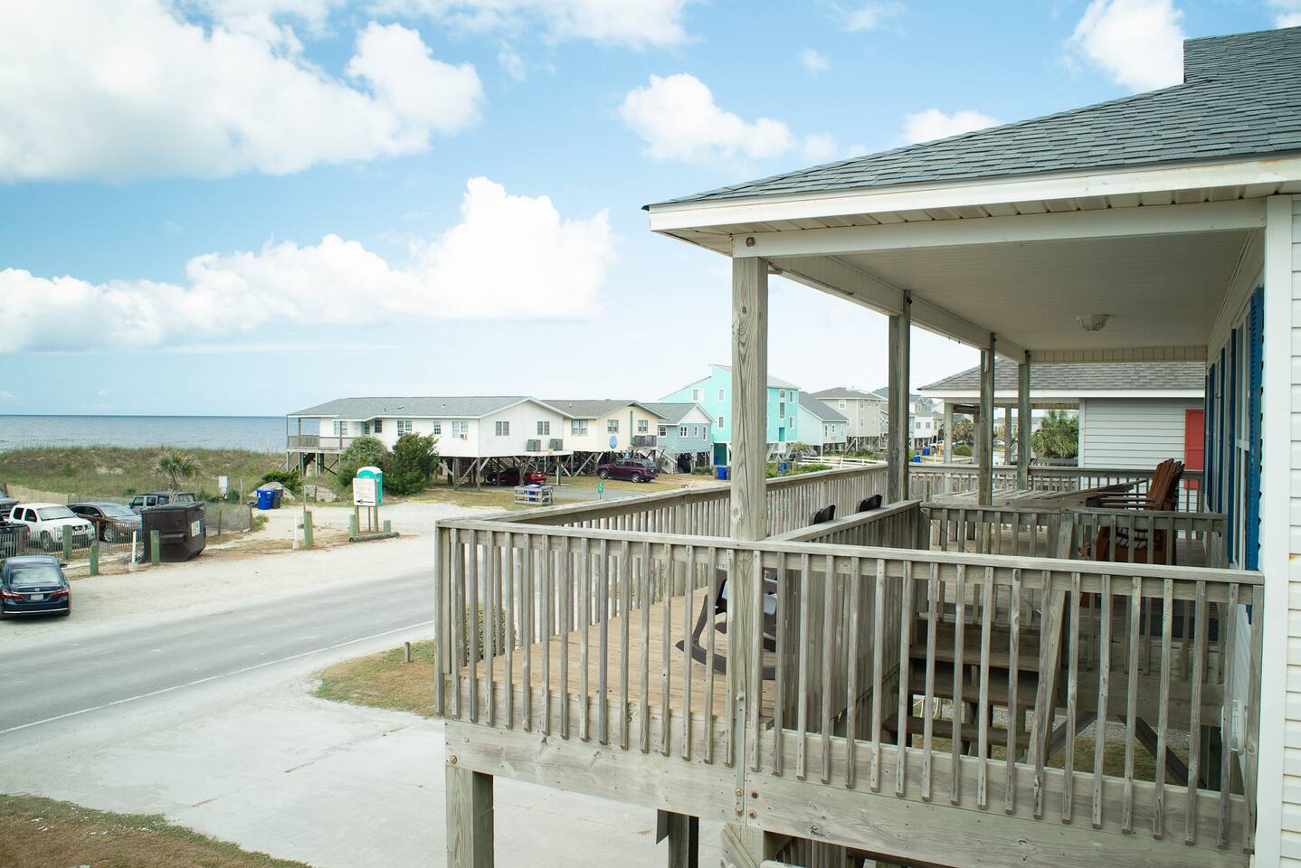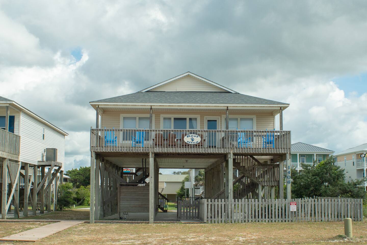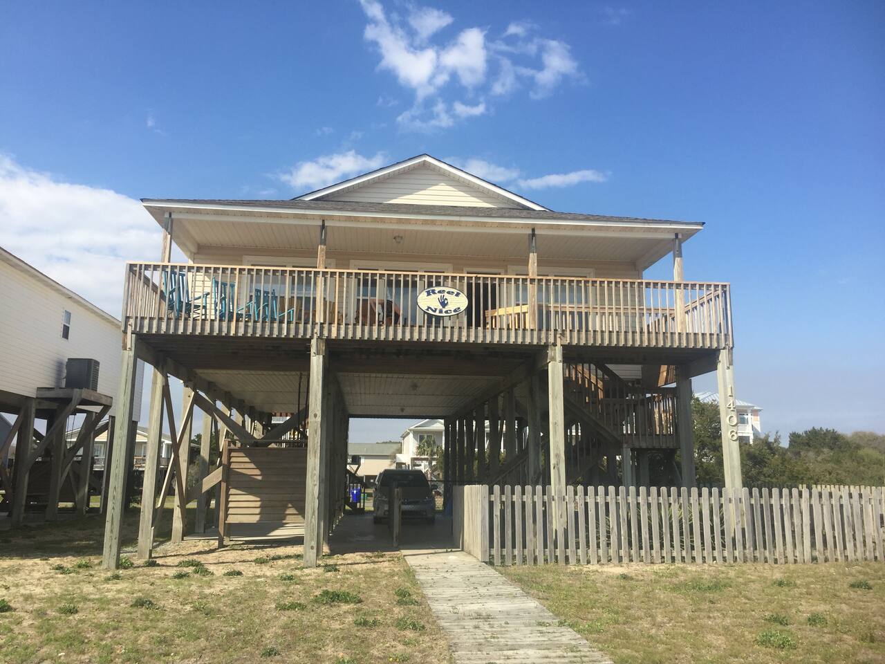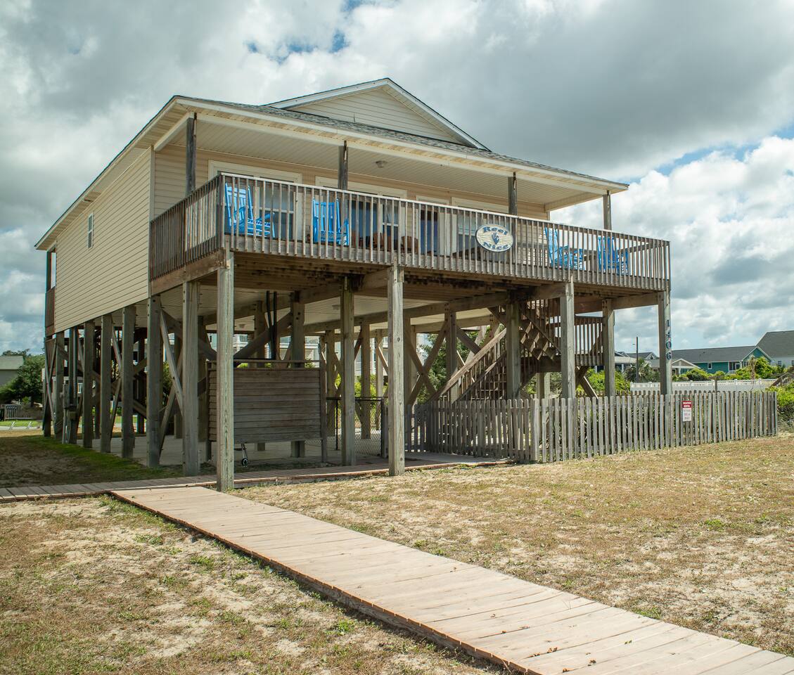 4 Bedroom, 2 bath beach cottage on stilts, very conveniently located just across from Ocean Crest Pier and has beautiful ocean views and easy beach access! 1 king bed, 2 queen beds, 2 twin bunk beds and a pull out queen sleeper sofa make this house great for a family vacation. Outdoor shower with hot water allows you to keep the house clean of sand. We are dog friendly with a pet fee of $100/ stay for two dogs.