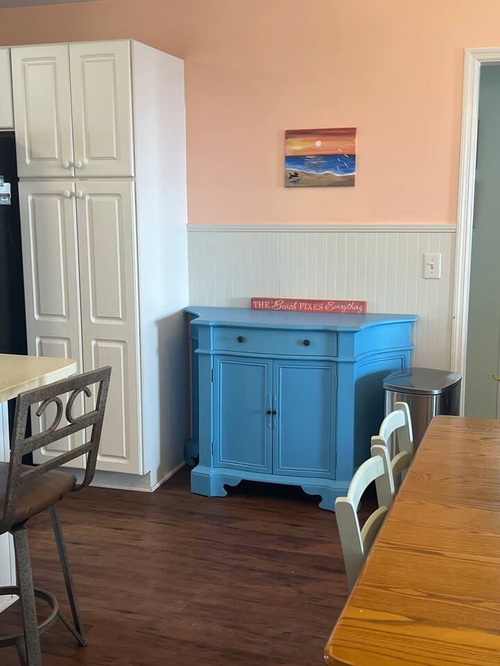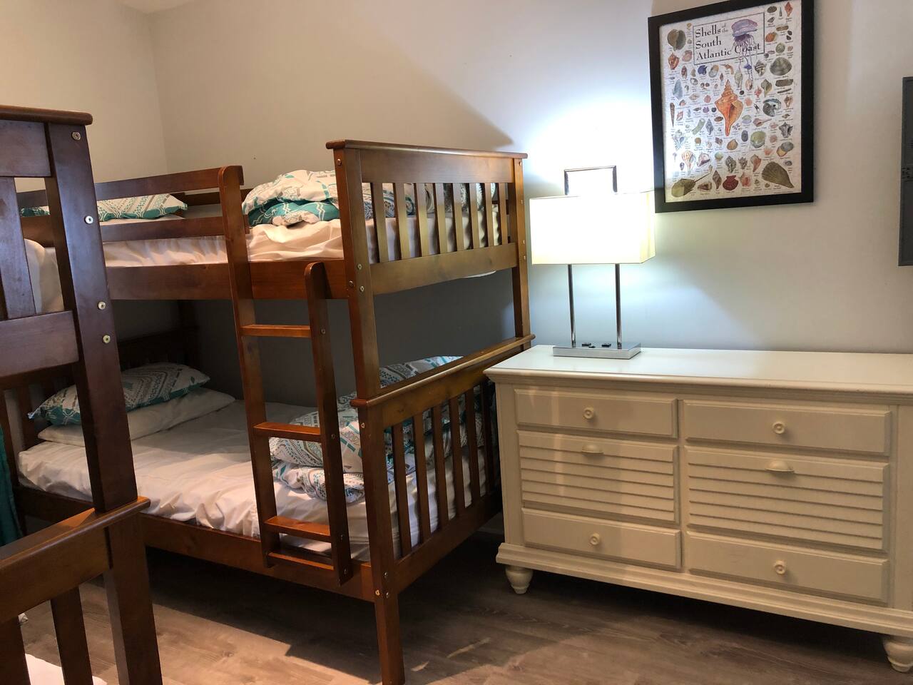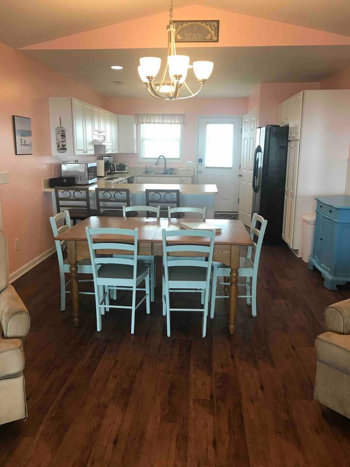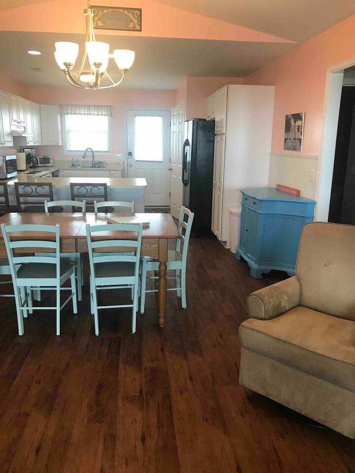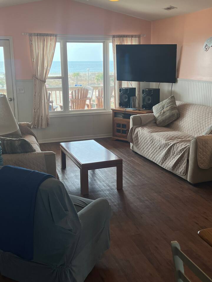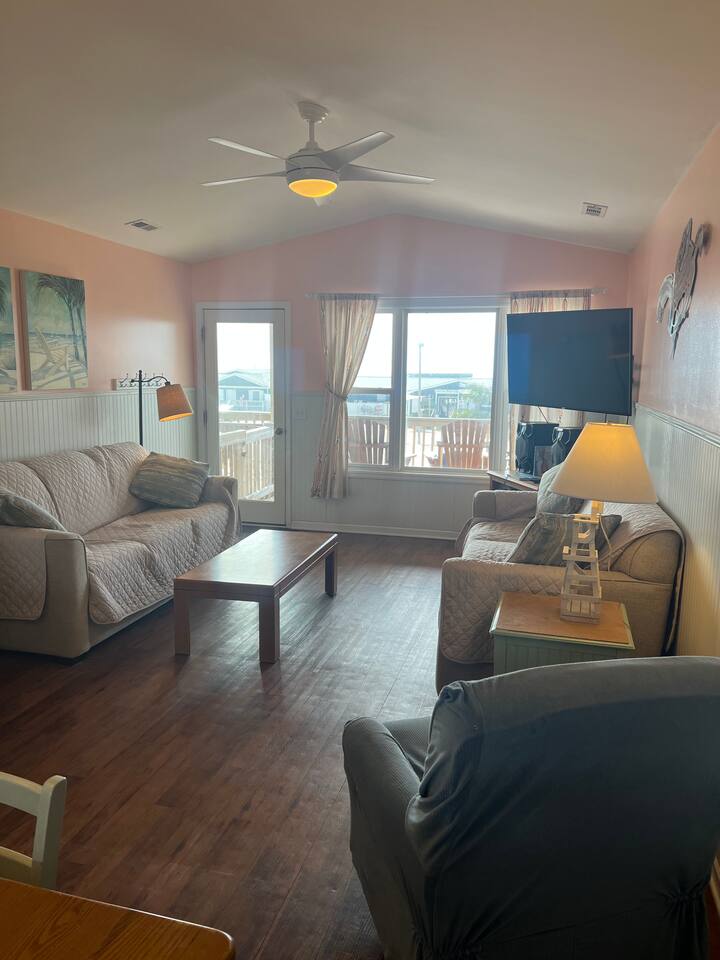 4 Bedroom, 2 bath beach cottage on stilts, very conveniently located just across from Ocean Crest Pier and has beautiful ocean views and easy beach access! 1 king bed, 2 queen beds, 2 twin bunk beds and a pull out queen sleeper sofa make this house great for a family vacation. Outdoor shower with hot water allows you to keep the house clean of sand. We are dog friendly with a pet fee of $100/ stay for two dogs.