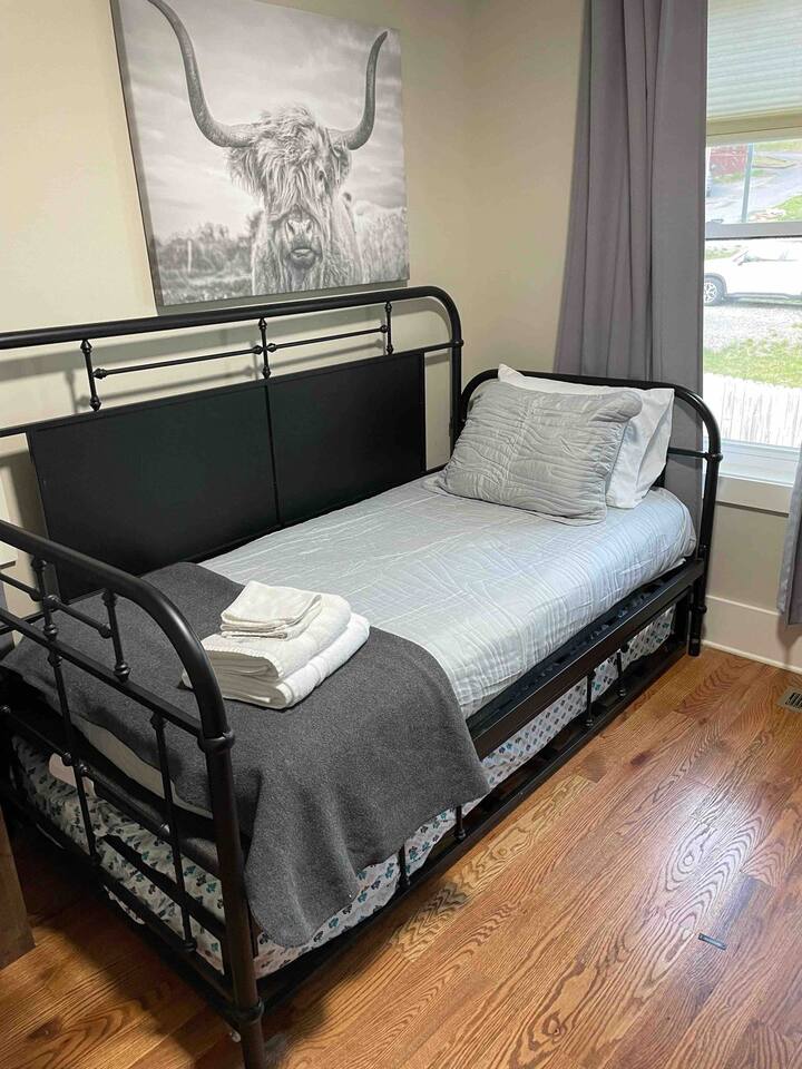 ‘Saddle Up' is a family and dog-friendly house located less than 1 mile from downtown Black Mountain, and 20 minutes from Asheville! Minutes to great hiking and restaurants, or just kick feet up and relax at the house. It has everything you need for a quiet, convenient mountain get-a-way. We are pet (dog) friendly with a pet fee of $100 per stay! The Pet fee is charged after booking is paid in full. Linens and towels provided. Fenced backyard bring or purchase fire wood for fire pit in back
